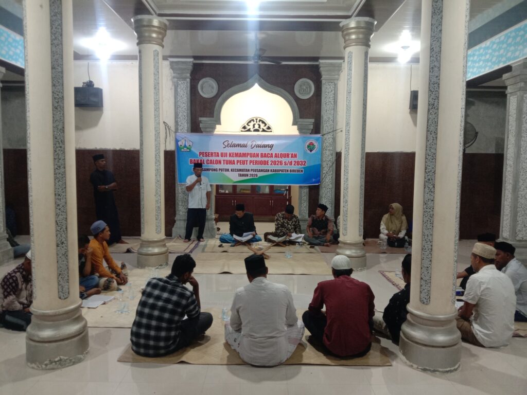 Gampong Putoh, Peusangan — Panitia Pemilihan Tuha Peut Desa Gampong Putoh, Kecamatan Peusangan, Kabupaten Bireuen, menggelar tes baca Al-Qur’an bagi peserta bakal calon (bacalon) Tuha Peut, pada Selasa, 03 Februari 2026. Kegiatan tes baca Al-Qur’an tersebut dilaksanakan sebagai salah satu tahapan penting dalam proses seleksi bakal calon Tuha Peut, guna memastikan kemampuan dasar keagamaan para […]